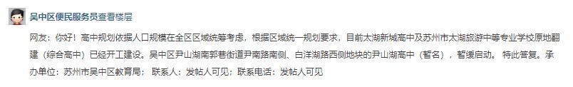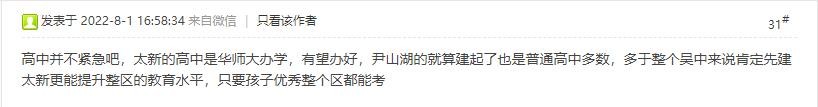 还有网友表示:建设太湖新城高中更有利于提高区教育水平,只要娃优秀,哪里都能上。