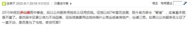 由于教育一直以来都是尹山湖的短板,尤其是缺乏高中学校,因此这一话题在寒山闻钟论坛引发讨论。