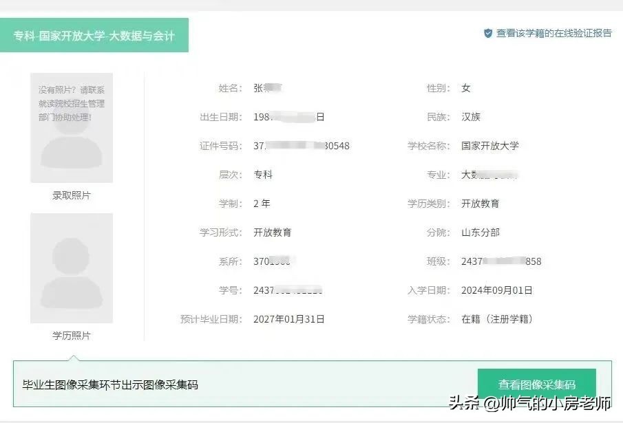 注意:验证完毕进入后,即可查看到自己的学籍信息。