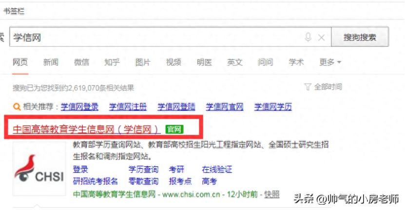 1、在浏览器搜“学信网”或者复制网址:https://www.chsi.com.cn/如下图:
