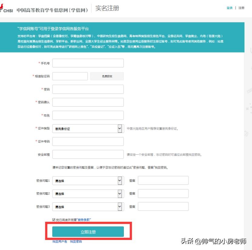 4、高起专没有注册学信网账号的,先自己用手机号注册,如下图: