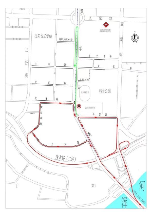 一是由南二环路和文安西巷绕行。从丹阜高速及浑南地区来的车辆,可以在五爱立交桥提前进入南二环路铁西方向匝道,经文安西巷(明星街)进入文安路。如已驶入青年大街,也可经科普路、五爱街进入南二环路。
