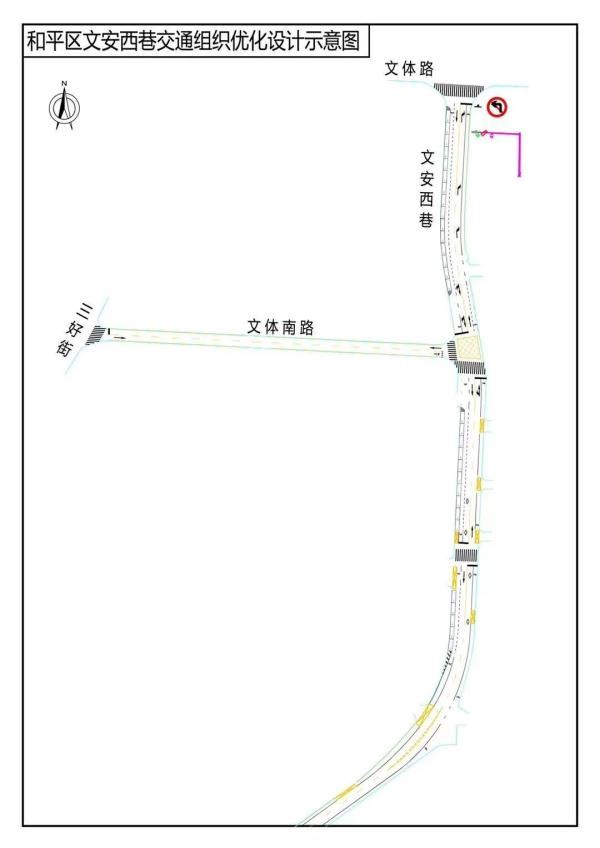 因文体路文安西巷路口,南向西左转通行车辆溢出情况较为严重,影响文体路西向东直行车辆通行,波及三好街区域交通运行,拟取消文安西巷左转通行,原通行车辆可经文体南路、三好街通行。