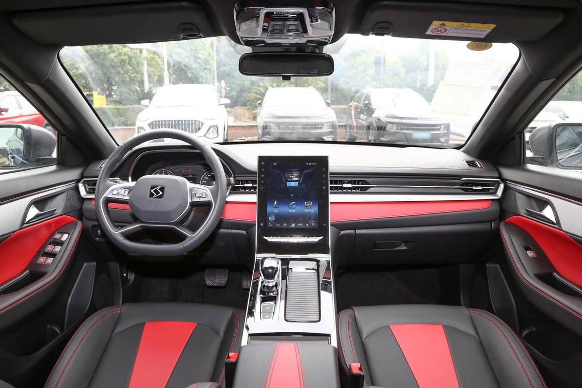 从这台车的名字就可以看出,该车在整车设计上是比较动感的。以这台车的前脸为例,整车采用的是一种较为运动的造型,尤其是前方的饰条以及两侧的大灯,看起来是比较炫酷的。和之前的车型一样,新车依旧采用曜石灰色车身与红色性能套件,不过整车还是依托部分细节设计,打造了黑化的车身氛围。