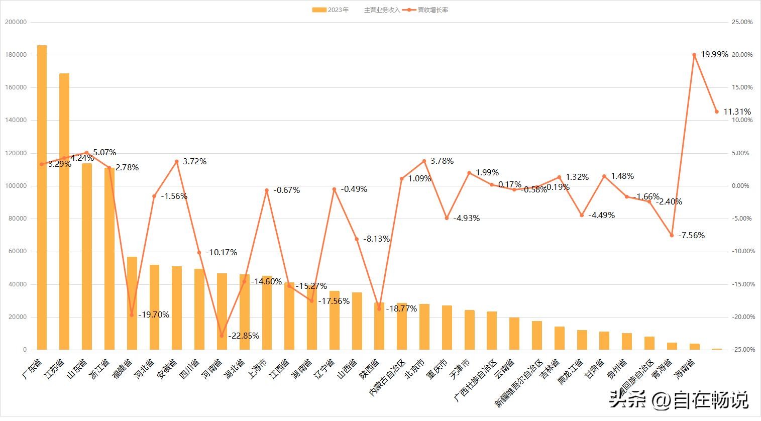 增长率最高的是青海省19.99%,海南省11.31%;跌幅最大的是河南省-22.85%,福建-19.7%,陕西-18.77%,湖南-17.57%。