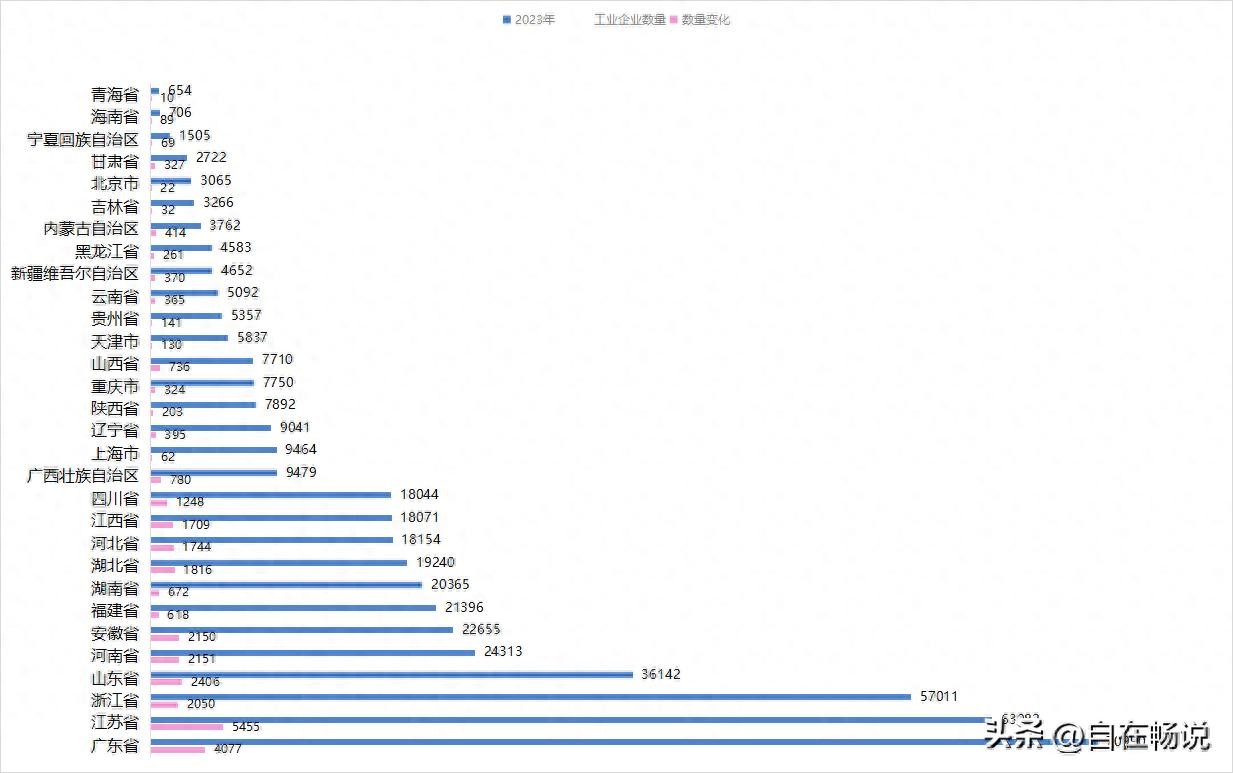 广东省工业企业数量达到70990家,全国第一,2023年增长4077家。