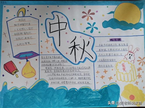 为提高孩子们对中华民族传统文化的了解与兴趣,更多地感受和了解中秋节的风俗习惯,体验传统节日的文化内涵,加深对祖国悠久历史文化自信心与自豪感,特此中秋假期在班级内开展“中秋节”主题手抄报活动。