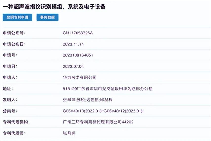 根据专利摘要,华为的超声波指纹识别模组、系统及电子设备,旨在提高指纹信息识别的准确率。