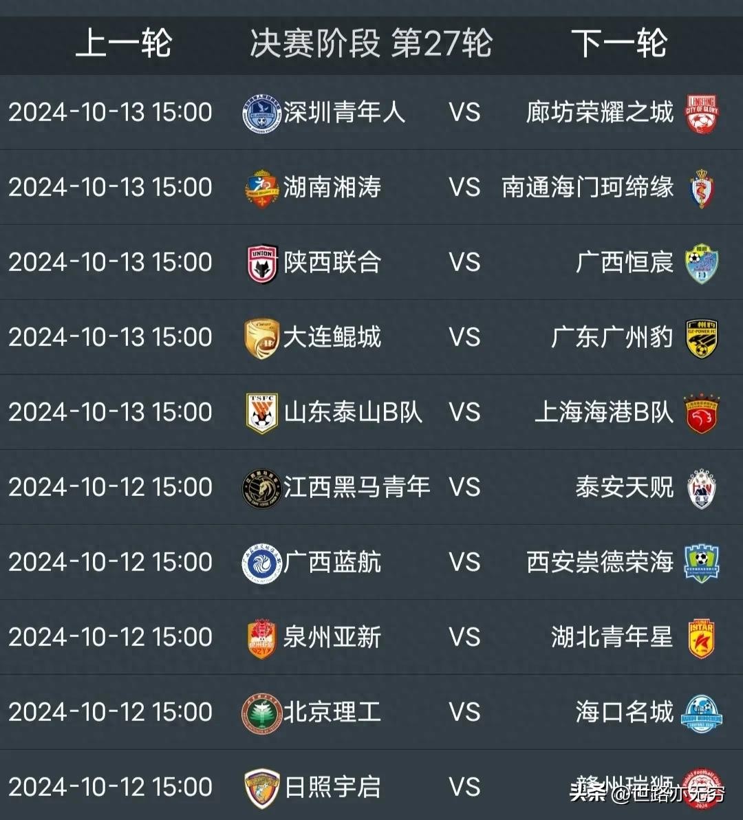 中乙联赛27轮前瞻,陕西联合大连鲲城深圳青年人等多队迎关键一战