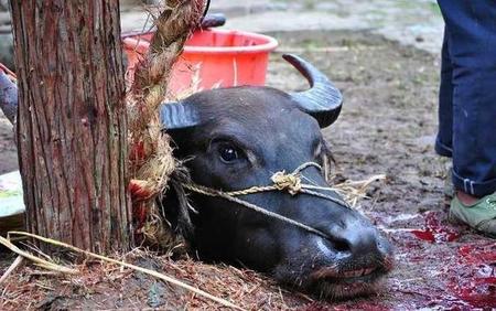 不吃狗肉,吃牛肉的同学或许想象不到这样的画面,就是这样的宰杀,才能为人类进贡各种牛肉大餐。现在宰杀的方式,大同小异,只不过,眼不见为净,眼不见,心不生圣母。除非你是素食主义者,可以逃出神明的诅咒!