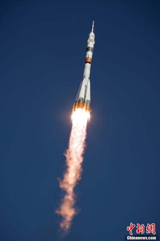 图为“联盟MS-14”飞船在哈萨克斯坦拜科努尔航天发射场发射。
