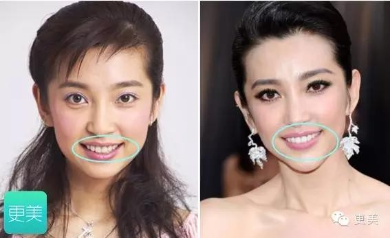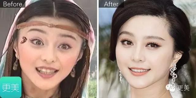 以前的范冰冰牙齿有点乱,两颗门牙略大略突出。现在的她则是一口糯米小白牙,晶莹剔透的。