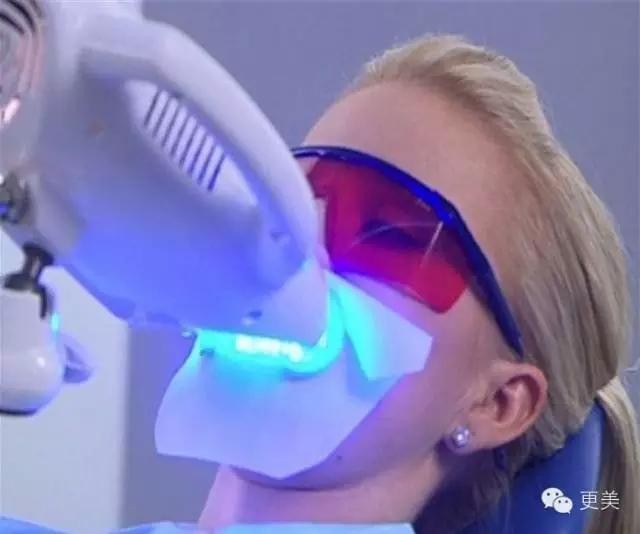 冷光美白是用高强度蓝光,经由特殊光学处理照射以“过氧化氢”为主要成分的美白剂发生氧化反应,把牙齿的色素置换出来。