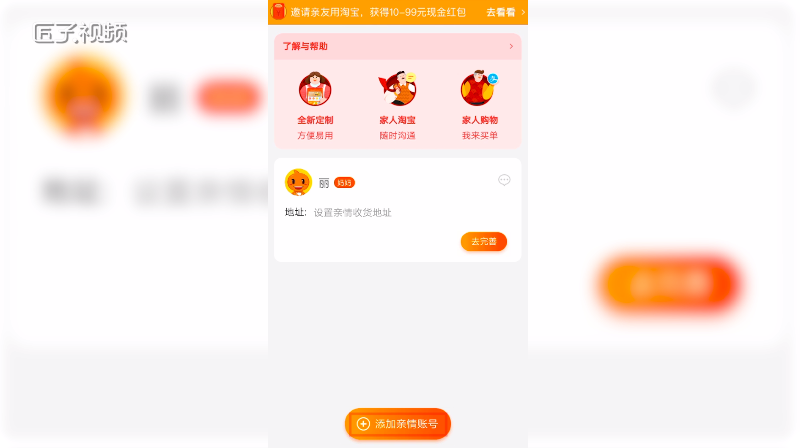 手机淘宝如何添加亲情账号 2026-01-23 05:00 点击: 来源:高饶网 摘要:手机淘宝如何添加亲情账号 1、首先打开手机淘宝 点击后下角的我的淘宝 2、点击我的账号下方的我的亲情账号 3、在家庭主页中找到添加亲情账号 4、点击进入 选择对方角色 5、输入对 手机淘宝如何添加亲情账号1、首先打开手机淘宝点击后下角的我的淘宝2、点击我的账号下方的我的亲情账号3、在家庭主页中找到添加亲情账号4、点击进入选择对方角色5、输入对方手机号6、点击一键开通就ok了 相关标签: 上一篇:杨丞琳上海,杨丞琳、陈妍希、阿Sa在上海外滩聚会 下一篇:四大金刚是哪四个婚礼