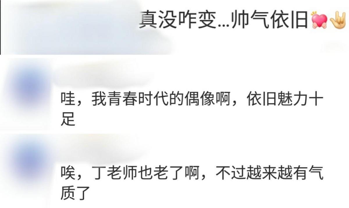 网友们在看到丁志诚的照片之后纷纷在评论区留言,有网友感叹“真没咋变,帅气依旧”,也有网友惊呼“哇,我青春时代的偶像,依旧魅力十足”,还有网友表示“唉,丁老师也老了啊,不过越来越有气质了”。