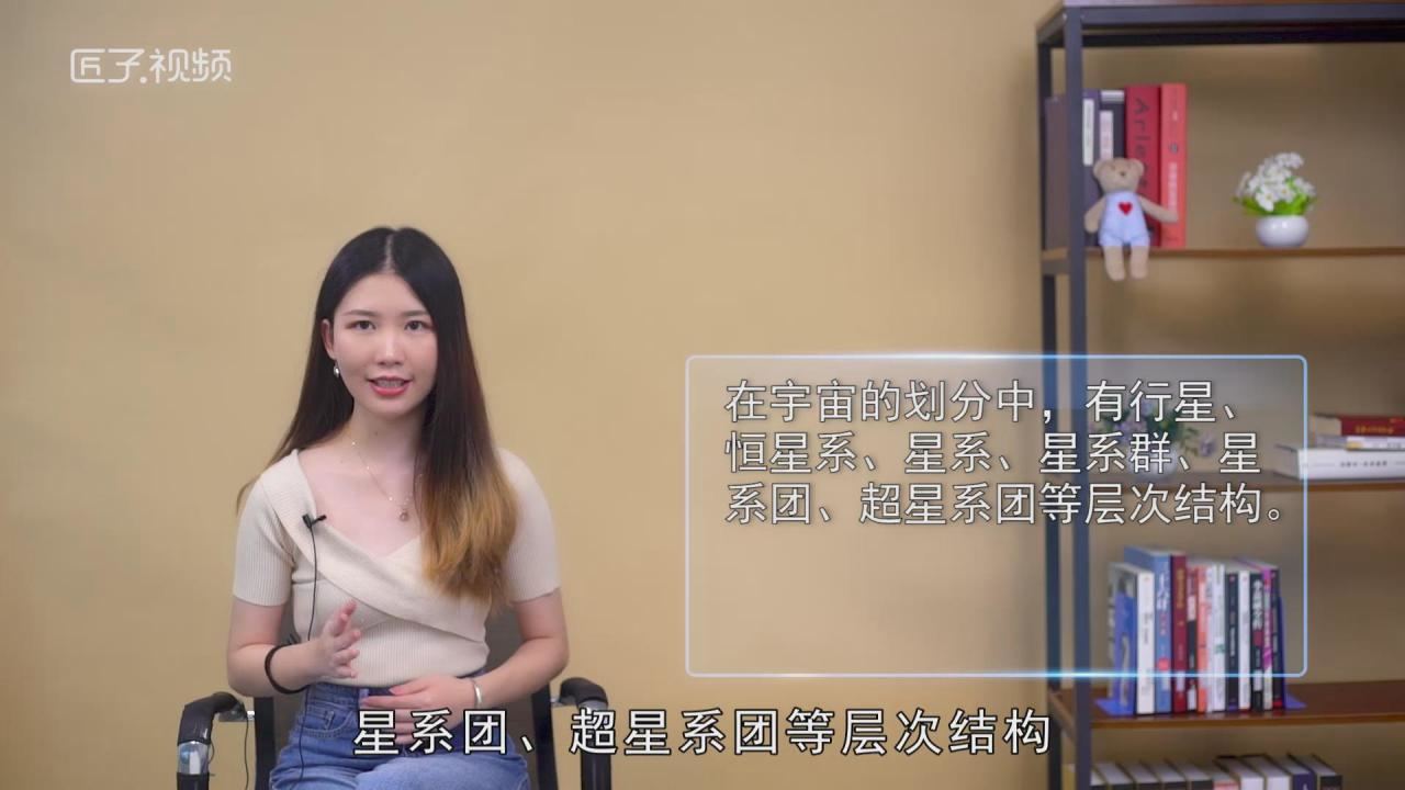 在宇宙的划分中,有行星、恒星系、星系、星系群、星系团、超星系团等层次结构。地球属于太阳系,太阳属于银河系,银河系的上一级天体结构叫星系群或者星系团,其中,小一点的星系聚集叫群,大一点的就叫团。而银河系属于本星系群中的一员。