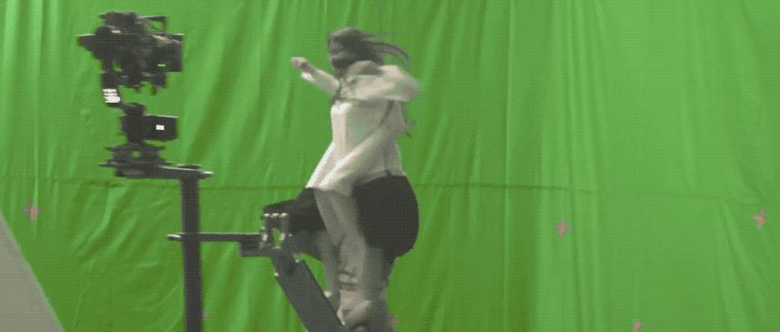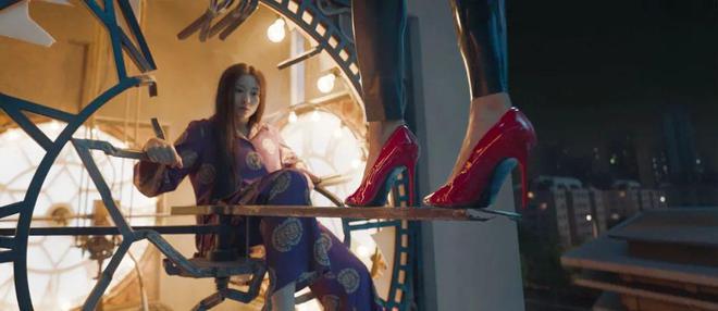 另外,娜然本身原来做过模特,有一定的时尚表现 力,给她设计一些腿法的动作,可能会比较有特色和表现力,跟冯宝宝以刀法为主的会有一个很强的对比。她去劈开徐三控物术飞过来的那些大石块、汽车,所以给她设计了空中三连踢,就是踢、翻、砸这种,以腿法为标志性的动作,让娜 然去练习,这些动作都是她自己来完成。