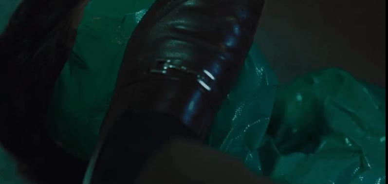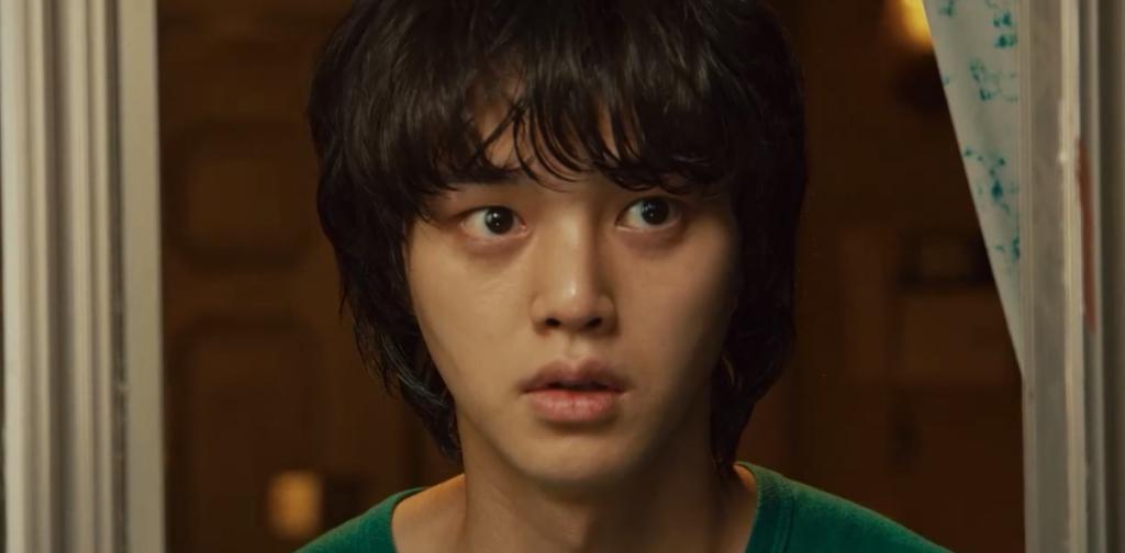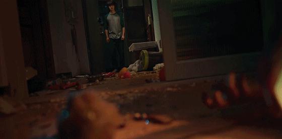 听到异响的贤秀出来查看恰巧撞见这一幕,吓得赶紧躲回房里,又通过电视门铃,亲眼目睹了女子异化的全过程。