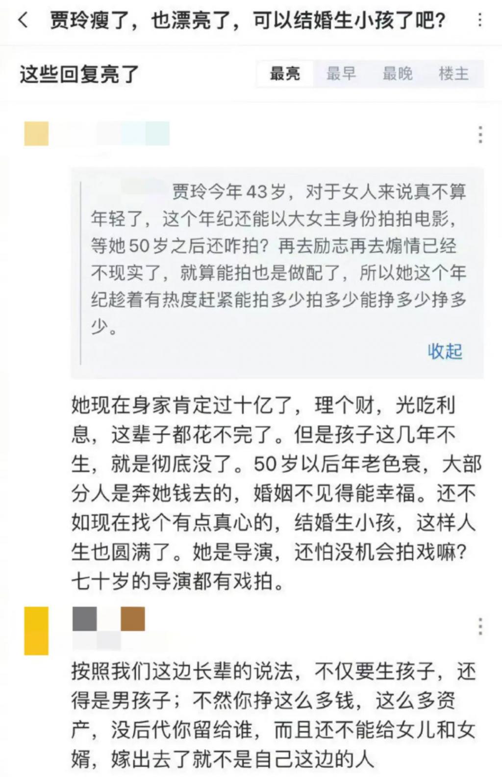 42 岁的贾玲,深受虎扑网友关心," 她瘦了也漂亮了,可以结婚生小孩了 "," 最好生男孩 "。