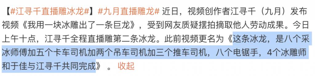 女雕刻师江寻千,雕出目前最大单体冰雕龙,没想到她发出来被一顿狂喷,喷她浓妆、摆拍、搔首弄姿,不可能有这样的才华。