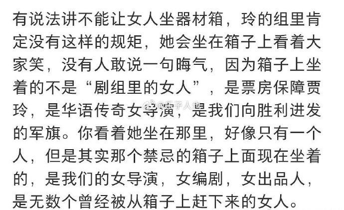 就像影视圈最老掉牙的穷规矩 " 女人不能坐器材箱 ",因为有了邵艺辉,有了贾玲,使得那个禁忌的箱子自己像个晦气的笑话。