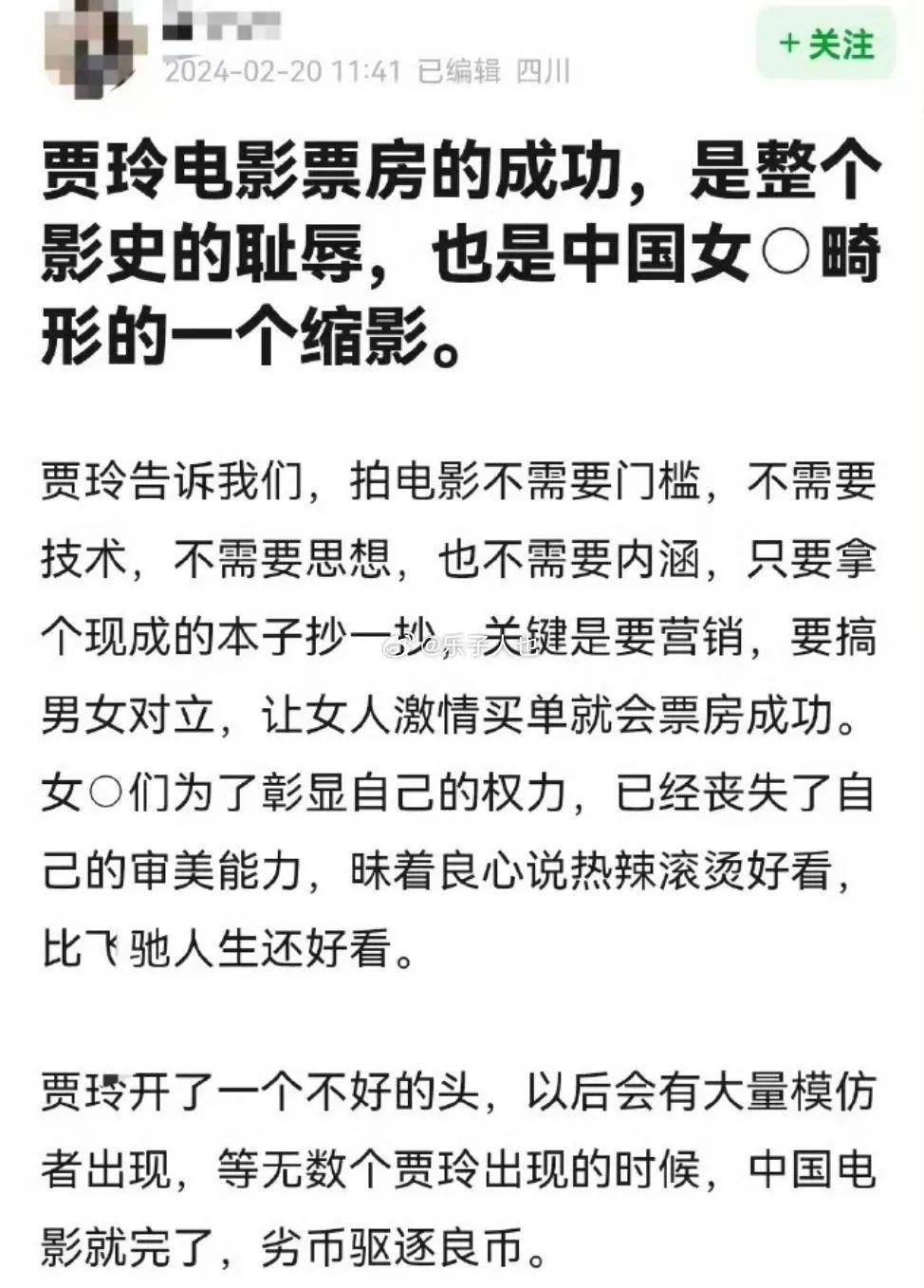 要是所有导演都学贾玲,电影不好好拍,只搞营销和男女对立,迎合女观众买单冲票房,中国电影就完了。