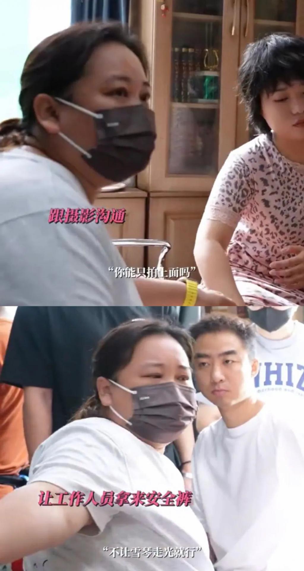 电影外,有贾玲拍摄时担心李雪琴走光,拿来毯子和安全裤的瞬间。
