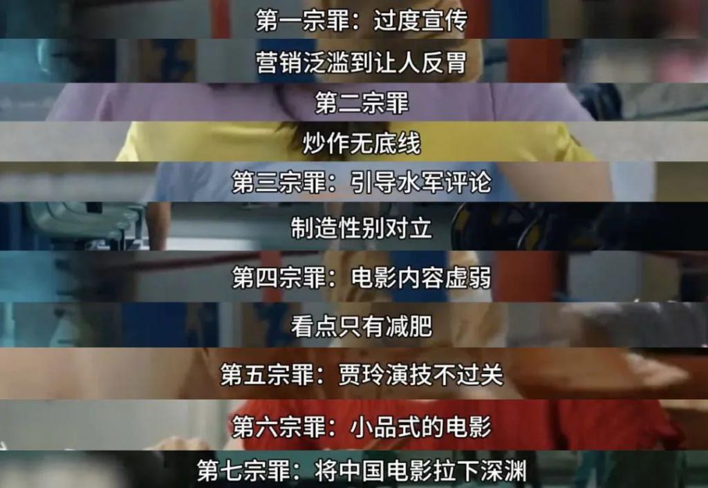 导演本人和这部作品,每时每刻都能遭遇到新的批评,陆陆续续总结出 " 热辣滚烫七宗罪 "" 中国电影的悲哀 "" 瘦下来眼里没光了 "" 一人减肥全国消费 " 等几大罪状,仿佛贾玲罪大恶极,凭一己之力拖垮了中国电影。