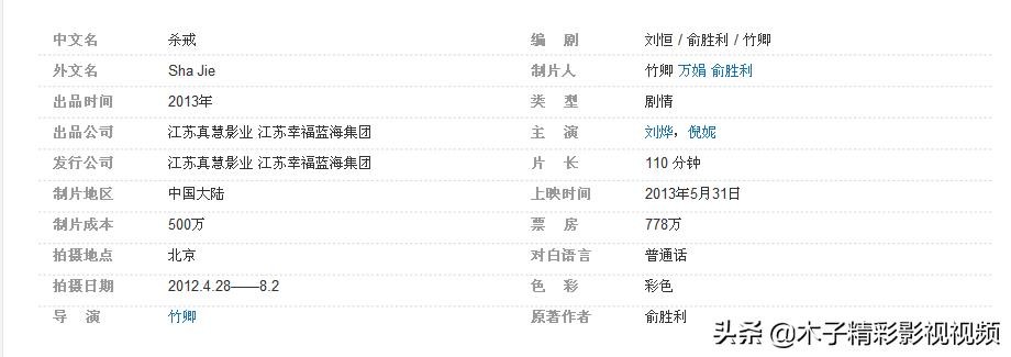 《杀戒》是改编自俞胜利的小说《亮眼》和《老六》,由竹卿执导,刘烨、倪妮等的爱情悬疑电影。该片讲述1997年-2003年几年间发生在中国内地某小城的故事,故事围绕男女主人公肖立昆和江月娥从偶然相识、相恋到闪婚、离婚,再到争夺孩子,彼此伤害,甚至大打出手,闹上法庭,置对方于死地而后快的心路历程。该片于2013年6月9日在中国内地上映。