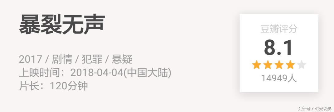 这次《暴裂无声》上映和《心迷宫》一样,也是暗黑系犯zui片,剧情烧脑又揪心,对人性的挖掘直至灵魂。目前,豆瓣评分高达8.1。