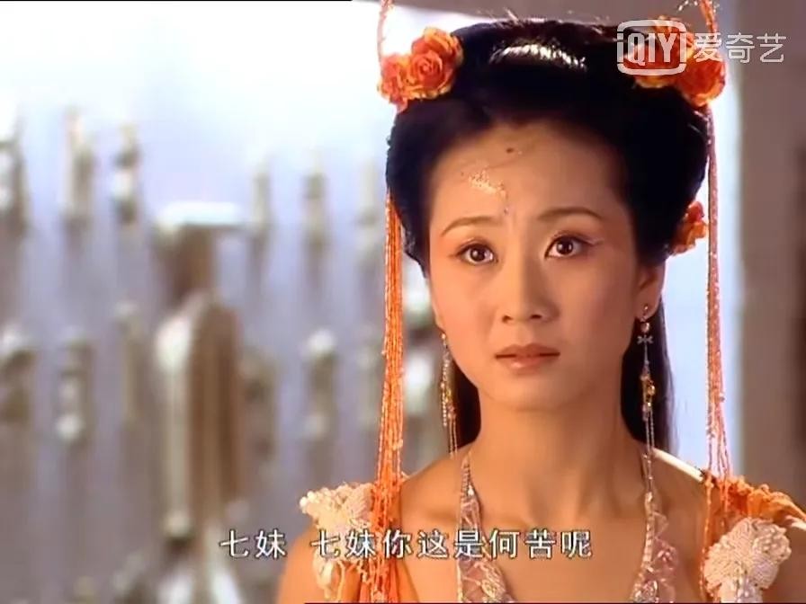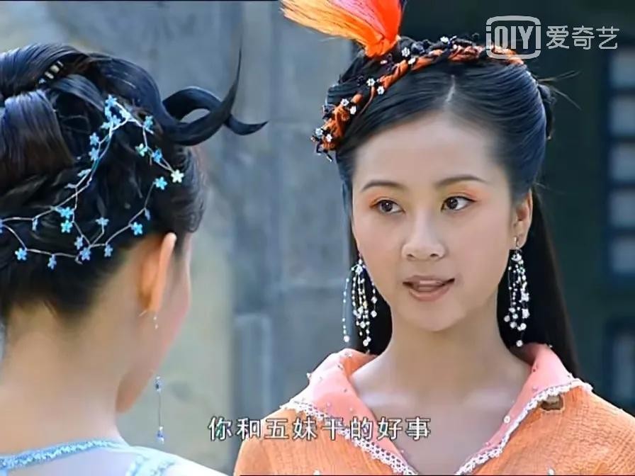 今天,羽溪想讲的是二公主橙儿。小时候第一次看这部剧,最喜欢的就是母丹饰演的二公主。她是七位仙女中最理性的一位,也最遵守天庭条规和王母的教诲。