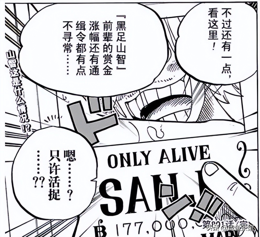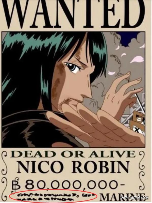 除了三部分正文内容之外,悬赏令左下角还有两行小字,在剧情中没有特别展示,所以很容易被人忽略。但随着海贼王越来越火爆,喜欢抓细节的读者也越来越多,这些小字的具体内容也很快被破解。