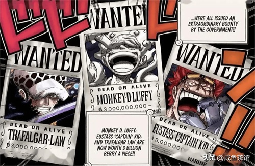 在刷完凯多&大妈联盟以后,路飞、基德、罗每人喜提30亿悬赏金,并争取到了一个四皇团名额。