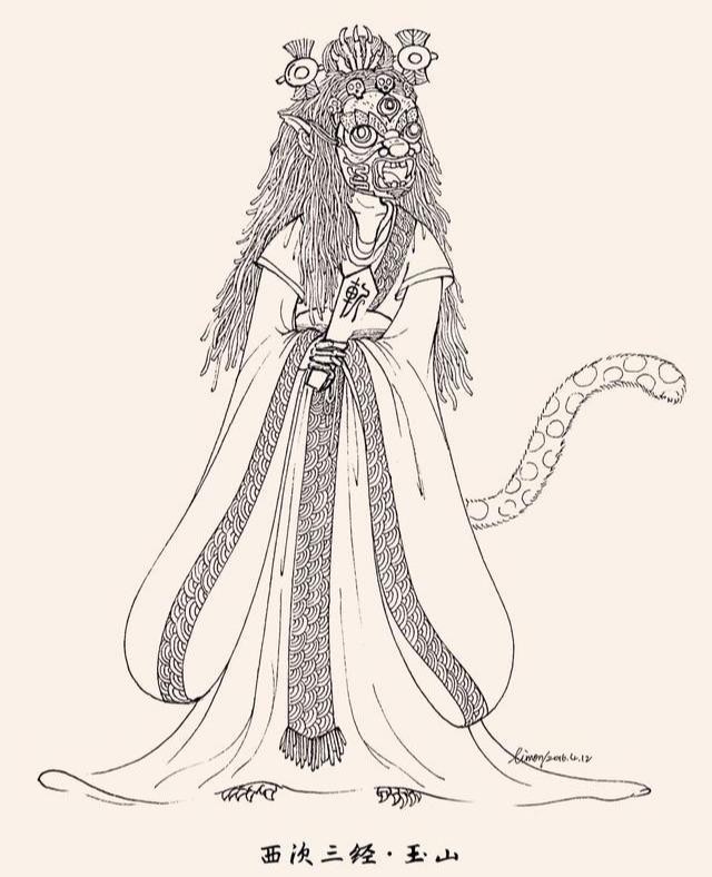 西王母最早的形象就是,《山海经·西次三经》又西三百五十里,曰玉山,是西王母所居也。西王母其状如人,豹尾虎齿而善啸,蓬发戴胜,是司天之厉及五残。带有明显的动物特征,什么意思呢,西王母居住玉山(这个时候还没搬到昆仑),像人一样,有豹子的尾巴,老虎的牙齿,戴一块美玉,掌管刑法。这个形象是凶残的一面,是掌管天下刑罚,执掌生杀大权的。由此可以看出西王母的无上神力。