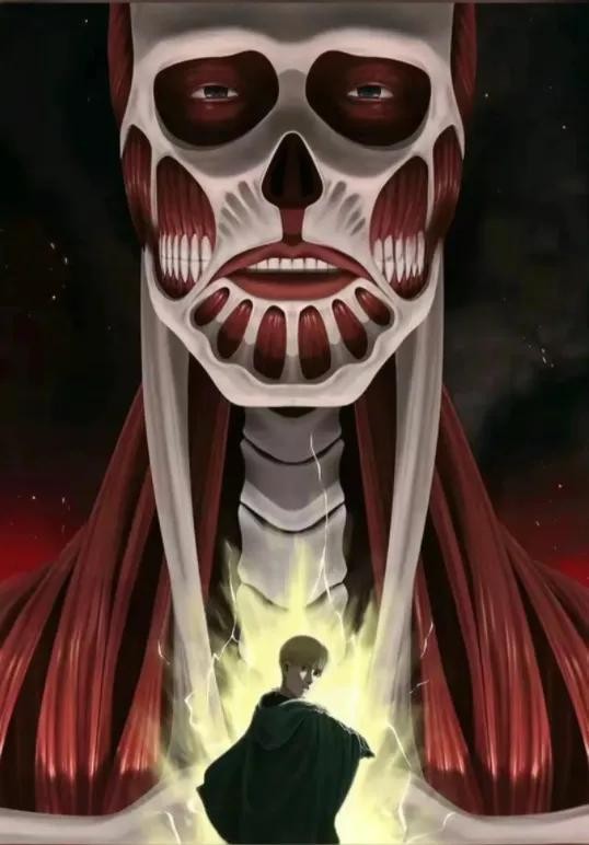 主角艾伦所掌控的巨人,不受始祖巨人控制,向往自由,能够看到未来,后天可以吸收其他巨人的力量;