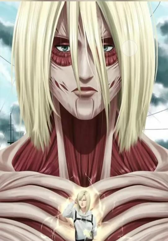 具有超大型巨人那样的无皮肤体表、铠之巨人的临时性硬质化、兽之巨人的局域版坐标弱化等能力,可能还加入了车力巨人的成分以拉长体力槽;虽然这些能力对比起其他巨人来说都不是最强,但胜在综合,再加上掌控者阿尼超强的格斗能力,和她对战将会非常可怕。