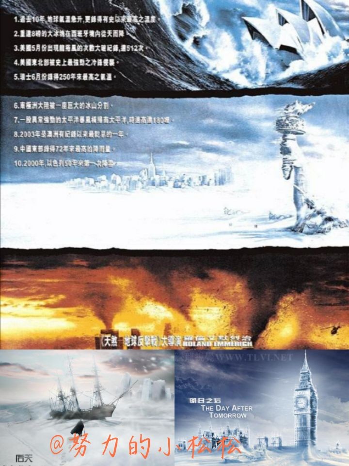美国气候学家杰克认为,温室效应正在引发地球的大灾难,北极冰川的融化,会让地球回到冰河世纪那样的劫难。但他的提醒并没有引起美国当局的重视,等到飓风、冰雹和极度严寒这一系列地球的巨变引发一场不可挽救的灾难时,一切都显得太晚。 美国政府开始组织北纬30度的民众转移到赤道周围,场面一片混乱,还有更糟糕的是,杰克的儿子,正困在曼哈顿的图书馆里,靠烧书生火来维持体温。大家怎样做才能逃过这场浩劫?冰天雪地的地球何时才能回暖?