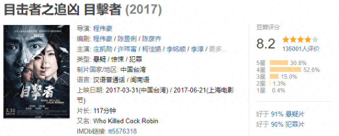 这部《目击者之追凶》小编认为是导演程伟豪最好的的作品了,算得上是台湾悬疑片天花板级别。温馨提示:胆小的千万不要一个人看哦!