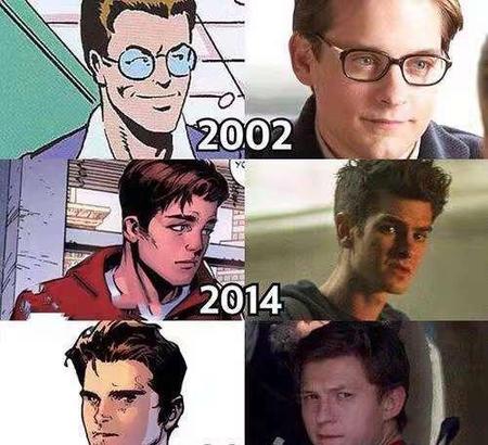 “托比·马奎尔”生于1975年,27岁扮演蜘蛛侠,“安德鲁·加菲尔德”生于1983年,29岁扮演蜘蛛侠。显然,此二人的形象距离观众心目中的“高中生”有一定差距,“托比”更是将蜘蛛侠的身份由“高中生”改为“报社记者”,而“安德鲁”,虽被称为“最帅蜘蛛侠”,但由他扮演的“高中生”并不十分形象,可能这也是《超凡蜘蛛侠》没有成功的原因之一吧。
