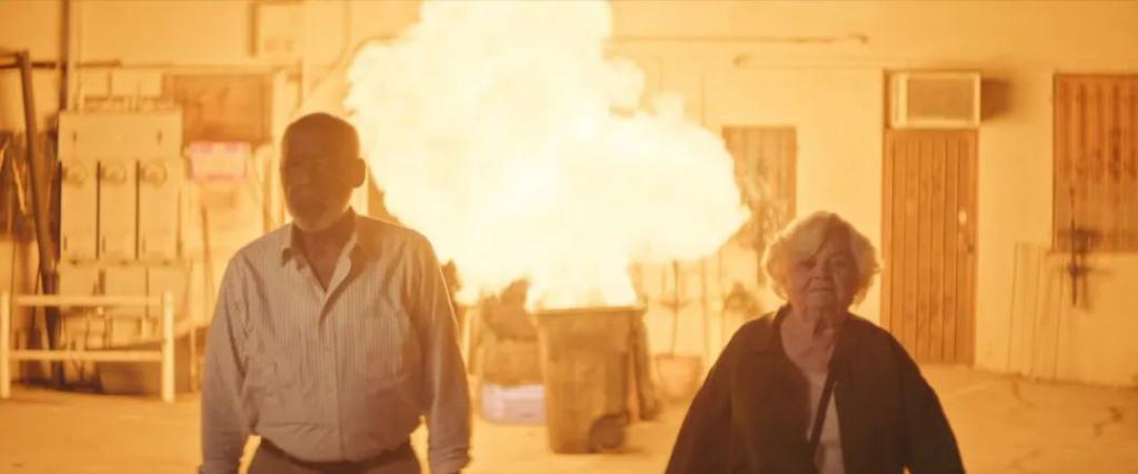 未熄灭的烟头扔进垃圾桶,引燃气罐,发生爆炸,老头老太头也不回。倒不是耍帅玩真男人从不回头看爆炸那一套,而是两人年纪大了耳背压根没听到。
