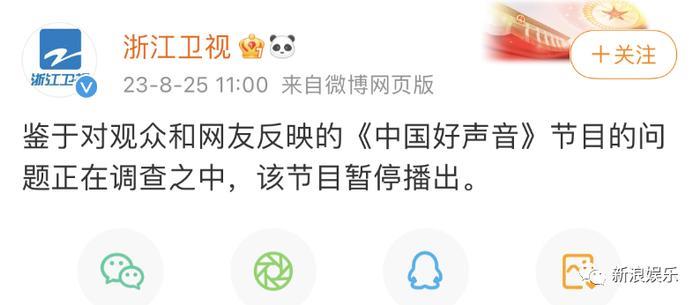 8月25日,浙江卫视官博就老牌综艺《中国好声音》引发的争议再次发布回应,宣布《中国好声音》暂停播出。