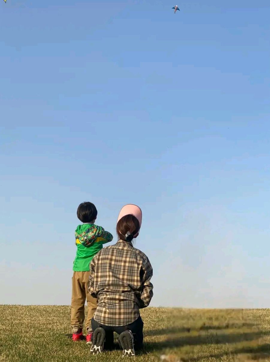 之前,张蕾曾经晒过自己和儿子一起放风筝的画面。