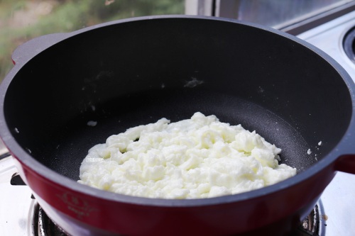3.热锅中倒1勺油,放入蛋清用筷子来回滑动