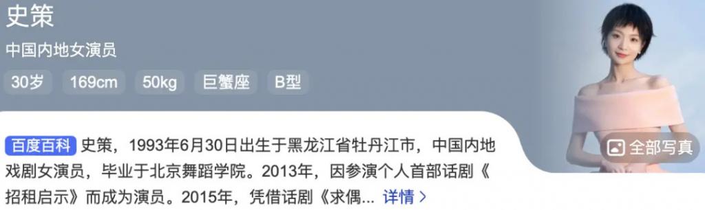 女方史策比吴幸键大三岁93年的,毕业于北京舞蹈学院音乐剧专业。