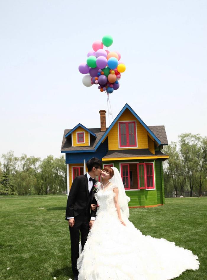在婚礼上,作为华中科技大学毕业的机械系理工男,李行亮给他的新婚妻子准备了他历时一个月打造的《飞屋环游记》的真实版飞屋,并深情承诺:“带你去全世界的每一个地方”。