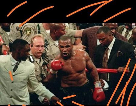 在泰森又一次被霍利菲尔德搂抱时,愤怒的泰森咬了霍利菲尔德的耳朵。