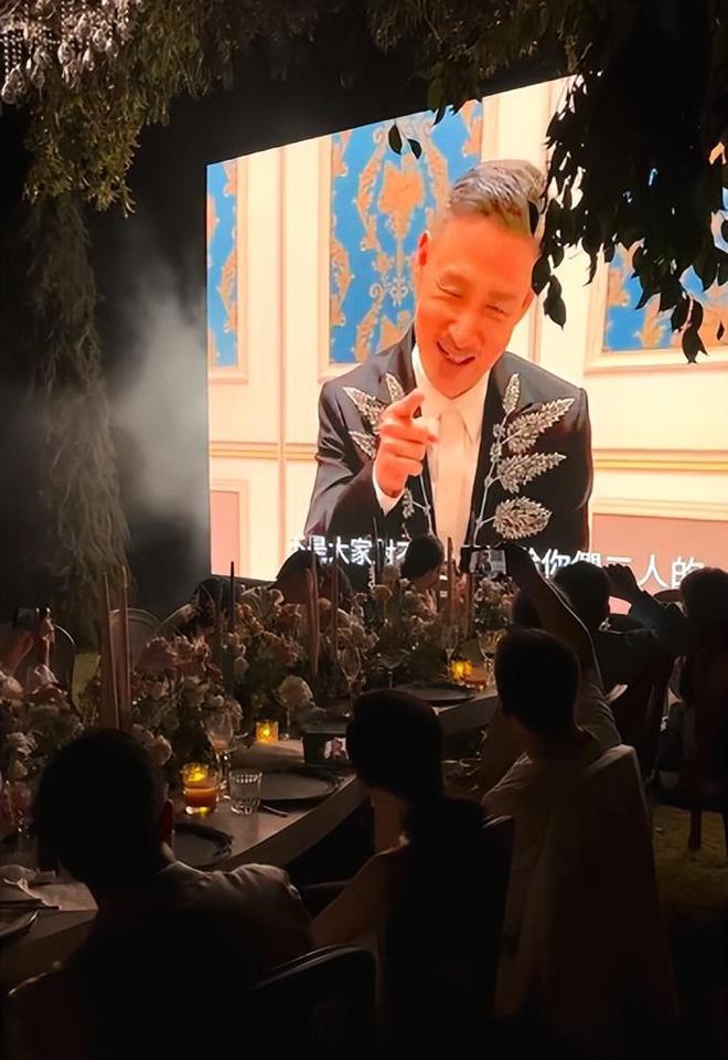 从视频中我们可以看到,何超莲和窦骁的婚礼现场人非常多,当大家正沉浸在他们婚礼的时候,突然大屏幕上传来张学友录制好的视频,视频中的张学友打扮帅气,身穿一件黑色的西服搭配白色衬衫非常绅士,张学友的那件西服上还有印制的白色花纹看起来非常有艺术,看来也是张学友特意挑选的。