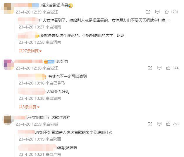 不过也有一些网友觉得窦骁何超莲这样级别的婚礼居然能请到 " 歌神 " 张学友来演唱," 是不是有什么钞能力啊 "、以及 " 这首歌是在暗讽窦骁倒插门吗 ?"