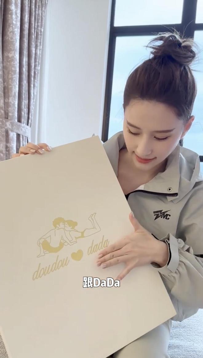 视频里何超莲介绍了婚礼给朋友以及媒体的伴手礼,精美的盒子上面专门印上了二人的 Q 版亲吻照,还写着 "doudou 和 dada",里面放了大牌护肤品、香水和巧克力,以及还有私人定制的眼罩和鞋子,粗略估计一下这套伴手礼价值在五千以上了。