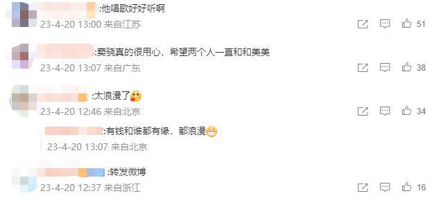 看到两人如此甜蜜,评论区网友发文表示:" 窦骁唱粤语歌好好听啊 "、" 窦骁真的很用心,希望两个人一直和和美美。"